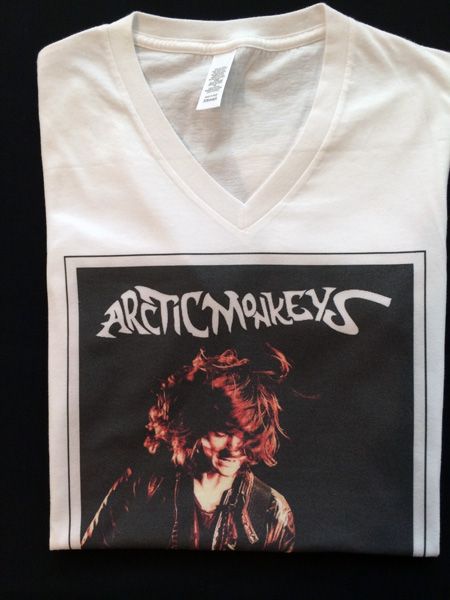 Alex Turner photo printed on a soft v-neck t-shirt. You WANT it!